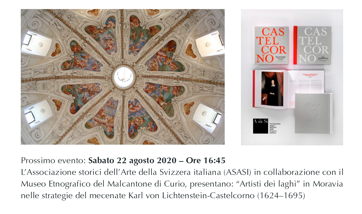 AsaSii, in collaborazione con il Museo Etnografico del Malcantone di Curio, è lieta di annunciare un pomeriggio di studio dedicato all’attività degli artisti e degli architetti provenienti dalla regione del Ceresio nel corso della seconda metà del Seicento promossa in Moravia dal vescovo di origini trentine Karl von Lichtenstein-Castelcorno (1624–1695).